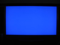 黑色纯度测试 通过对白色和黑色纯度的测试,我们看到电视在白色纯度方面表现的十分不错,可以说是没有一点瑕疵的白。不过由于拍摄问题,画面的四角出现了淡淡的蓝色,在实际测试中是没有这个现象的。