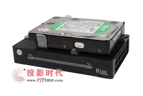 亿格瑞R100高清播放机采用塑胶外壳,顶部采用密集的散热孔设计,通风散热良好,并且由于硬盘是外置的,因而无需担心散热的问题。