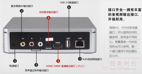 接口方面,该产品拥有HDMI高清输出接口、色差高清输出接口、复合视频接口、双声道模拟高报立体声输出接口、USB接口、LAN接口等,对于大多数的入门级用户来说,这些接口基本足够使用了。