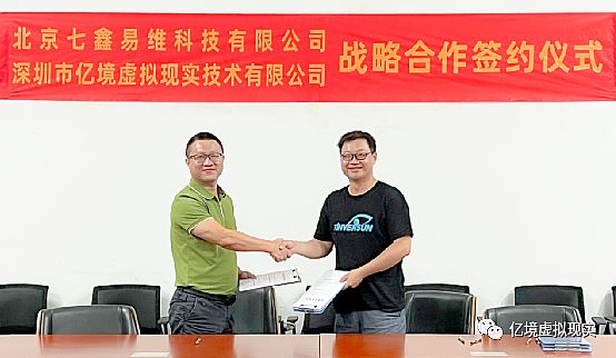 亿境EmdoorVR运营总监陈琳、七鑫易维副总裁路伟成作为签约代表签署了本次战略合作协议。