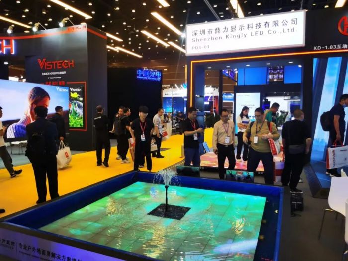 本次展会,鼎力显示携带“1.83 DOB系列三面沉浸式地面屏”+“3.91 KD系列互动地砖屏”+“6.25 KM系列户外互动地面屏”产品精彩亮相,重点呈现沉浸式、户外防水等应用场景解决方案。展会现场人头攒动,众多创新产品及解决方案备受现场宾客青睐。