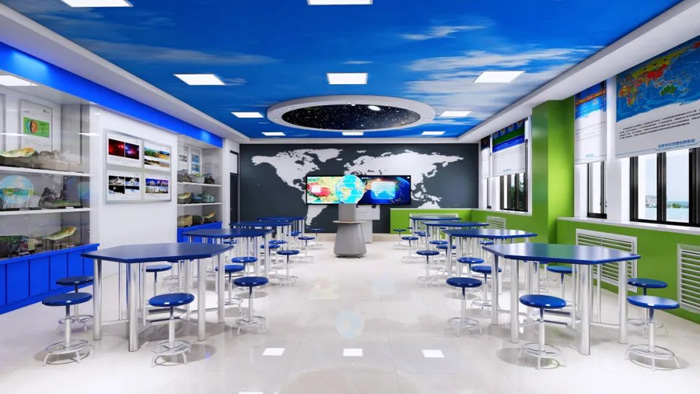 包含整体地理环境设计、数字化地理环创教学系统等模块,数字化环创教学系统可以通过老师端以及壁挂接收端可以根据老师授课的主题自主实施变换氛围布置内容。实现教学环境与教学内容实时联动。