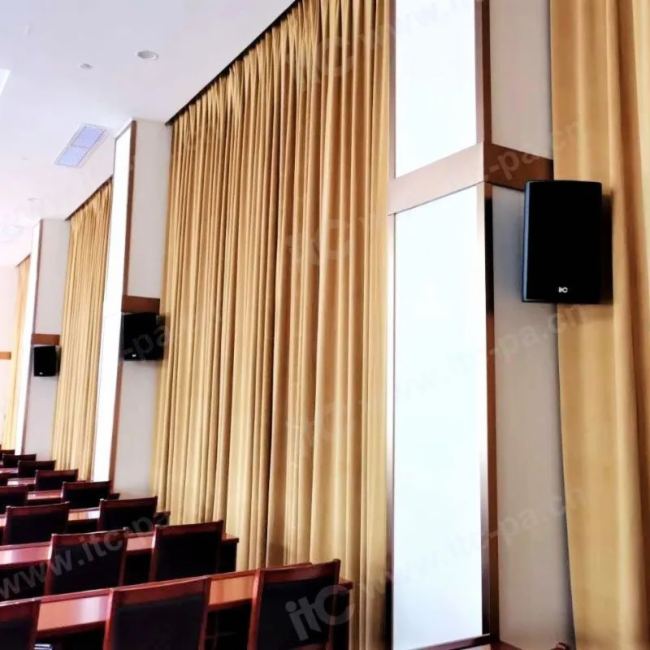 在会讨扩声方面,itc为其配备了数字会议系统和无线手持话筒,并结合会场空间布局,将itc专业音箱安装在会场前、中、后位置 ,整个声场效果完美,中高频覆盖全面,清晰悦耳,低频震撼有力,可实现高品质的音频信号及高保真发言人声,保证会场所有人员360°全方位无死角准确听音,多系统的融合应用,充分满足了报告厅扩声需求。
