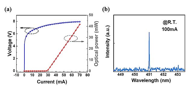 图2 蓝光激光器的电致发光光谱,发光波长为451nm。