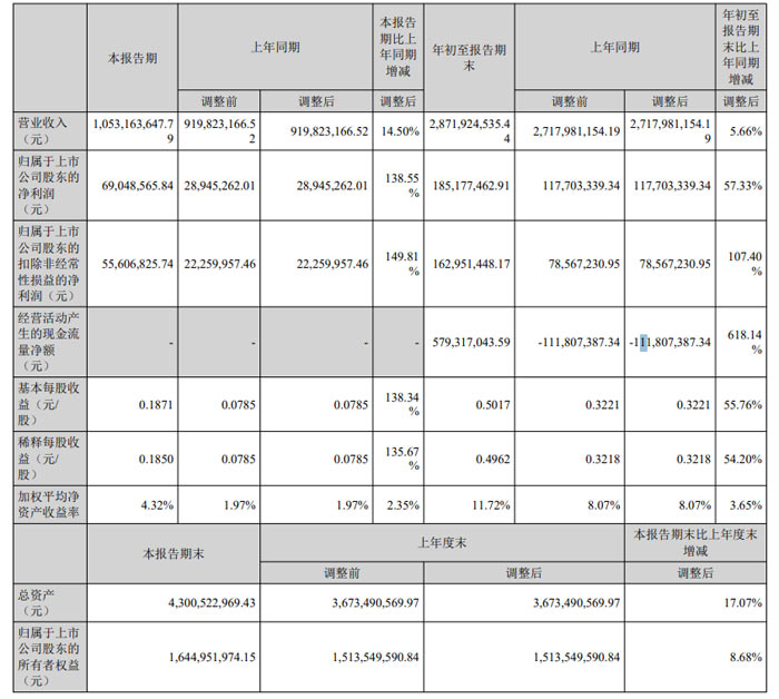 截至 2025 年第三季度末,公司总资产达 43.01 亿元,较上年度末增长 17.07%;归属于上市公司股东的所有者权益为 16.45 亿元,较上年度末增长 8.68%,资产规模与股东权益稳步扩大,财务结构更趋健康。