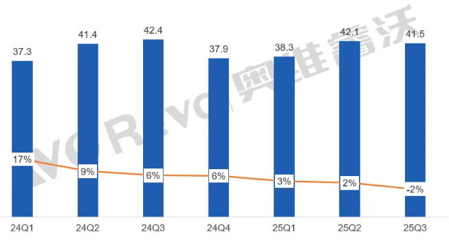 24Q1-25Q3显示器面板季度出货&YoY