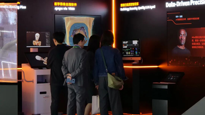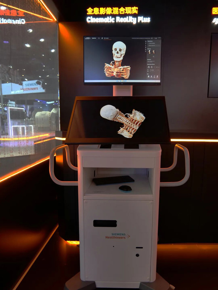 在本届进博会的西门子医疗展位,索尼空间现实显示屏与西门子新发布的医学图像处理平台深度集成,组成“全息影像混合现实”方案,实现人体器官的沉浸式立体可视化,让医生可以裸眼观看高度逼真的三维影像,更直观、立体地观察细节,增强对复杂解剖结构的认知和把握。