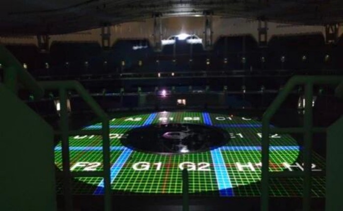 80台集群部署,攻克超远投射难题:环形舞台地面影像区域达19米×19米,投射距离超100米。巴可团队经科学规划,部署80台UDX-4K40,以“两台一组”集群安装,搭配2.8-4.5焦段专业镜头。UDX-4K40单机亮度达43000流明,集群工作时不仅应对超远投射,更抵御环境光干扰,确保现场与屏幕前观众都能清晰看到锐利画面与鲜艳色彩,体现巴可方案设计的专业性。