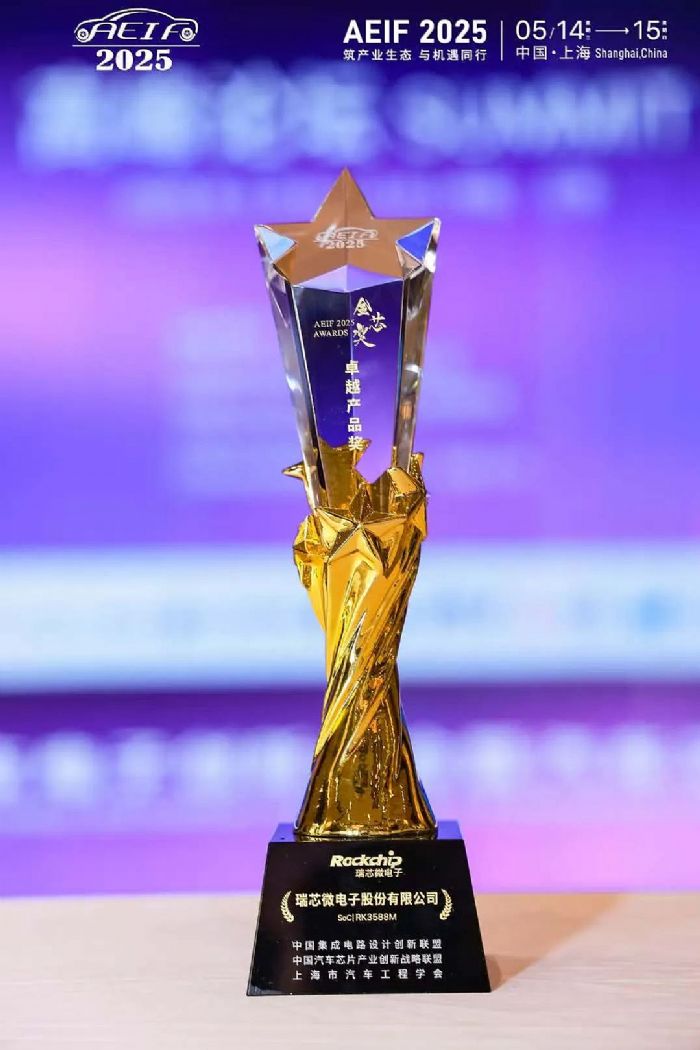 5月14-15日,由中国集成电路设计创新联盟、中国汽车芯片产业创新战略联盟、上海市汽车工程学会联合在沪举办“第十二届汽车电子创新大会暨汽车芯片产业生态发展论坛(AEIF2025)”,现场正式发布《2025 国产车规芯片可靠性分级目录》,并颁发了“2025汽车电子金芯奖”系列奖项,作为汽车电子领域极具权威性和影响力的目录及行业奖项,备受关注。瑞芯微8nm旗舰级芯片RK3588M凭借高性能高算力及丰富的量产案例,入选目录并荣获金芯奖评选的“卓越产品奖”。