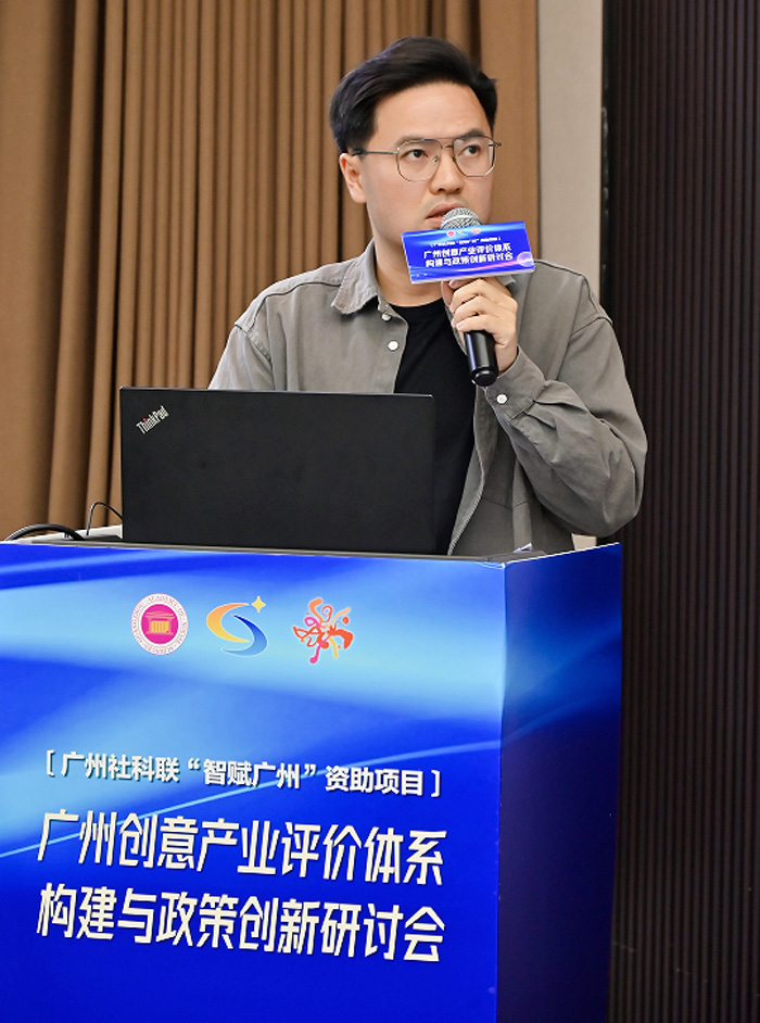 在开幕致辞和颁奖仪式后,研讨会进入专题报告环节,围绕创意产业评价、创意产业发展策略、创意IP应用三大主题,暨南大学马克思主义学院教授于小涵、广东财经大学文化旅游学院副院长潘博成等高校学者做了精彩分享,三大主题层层递进,兼具理论高度与实践导向,为广州创意产业高质量发展提供了多元思考与跨界智慧。