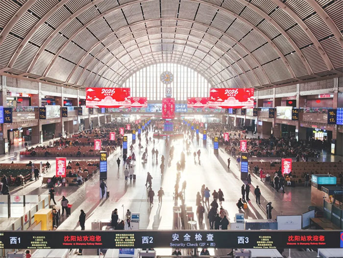 2026年春运,洲明很荣幸能以“光”为笔,记录下沈阳站的每一次相聚与别离。