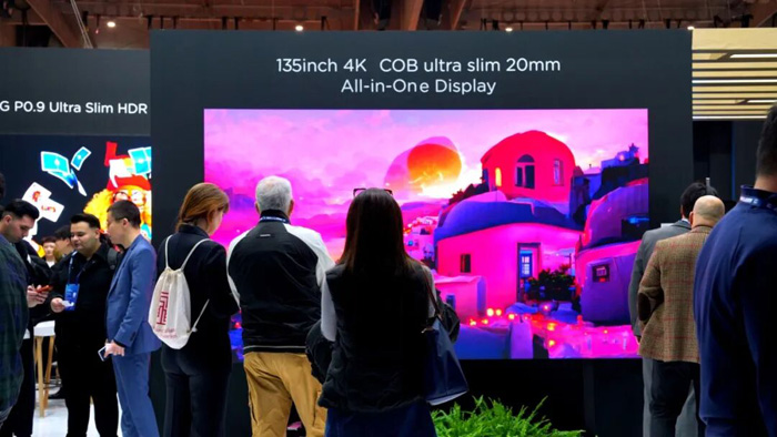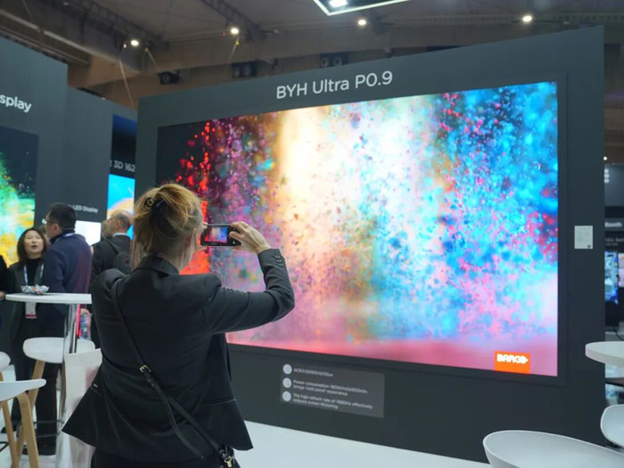BYH Ultra P0.9作为高端COB产品,搭配自研光学技术,在10流明环境光下实现20000:1对比度和1500nit全局亮度,保持冷屏温度,大模组设计进一步提升安装效率;135英寸4K COB超薄20毫米一体机屏占比高达99.4%,厚度仅20毫米,冷屏模式下屏幕温度低至37℃,支持2K/4K分辨率以及135/162可选尺寸,满足不同场景使用需求;