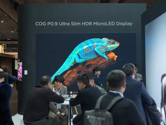其中,COG P0.9 超薄 HDR MicroLED显示屏以革命性技术成为焦点,不仅具备3000尼特超高亮度HDR,并通过AM护眼科技有效降低蓝光和闪烁,纤薄机身使每平米减重25%,162英寸巨幕所需拼接模组由288块减至48块,安装效率提升5倍,适用于家庭巨幕、艺术展示等多场景;